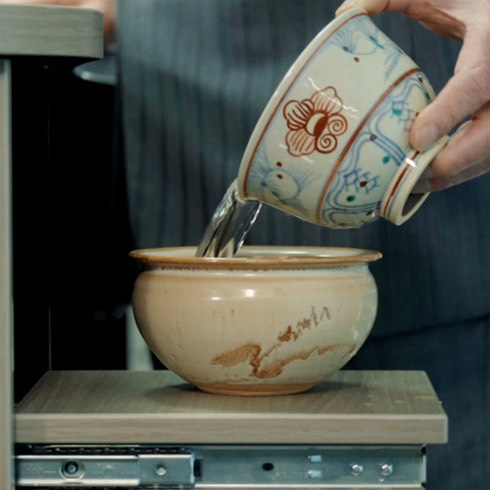 流麗デスクは茶道の繊細な所作に寄り添うデザインとなっており、茶器を美しく配置しやすい広めの天板と、心地よい高さ調節機能を備えています。高さを適切に調整することで、立ったり座ったりの動作がスムーズになり、落ち着いた和の空間にも調和し、茶の心を反映する道具としての役割を果たします。