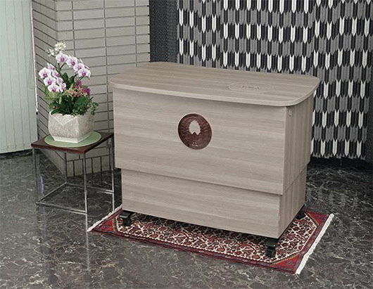 取引先でもある「オカムラ」の昇降デスクも10数年前に自社に導入しました。自分で使うことで実際のメリットを感じていました。新聞を立って読むと早く読めます。立って会議をすると、健康にも良いですし、いつもと違う発想が出てきます。眠くなることもありません。これはなかなか良い機能だと思いました。これが「流麗」を生むヒントとなりました。お茶席はまず、茶室で正座し、釜でお湯を沸かし、柄杓でお湯をすくい、茶わんに注ぐ等、お茶は前準備、後片付けが大変です。最近では、お茶の先生方の高齢化も進み正座が難しくなってきました。そこで「この昇降機能は使えるのではないか?」と「流麗」の開発がスタートしました。